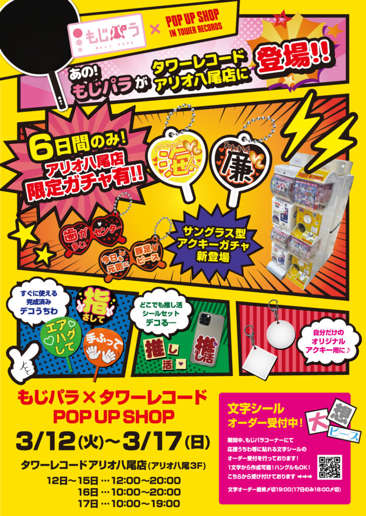 もじパラ×タワーレコードアリオ八尾店 期間限定POP UP SHOP 開催決定!
