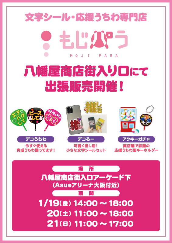 大阪・八幡屋商店街入口アーケード下にてもじパラCARを使用した出張販売を開催いたします。