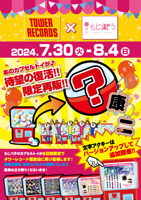 【期間限定】タワーレコード橿原店にもじパラガチャが登場!