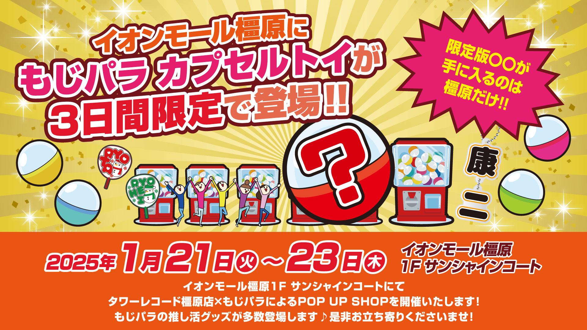 | 場所 | イオンモール橿原 1Fサンシャインコート |