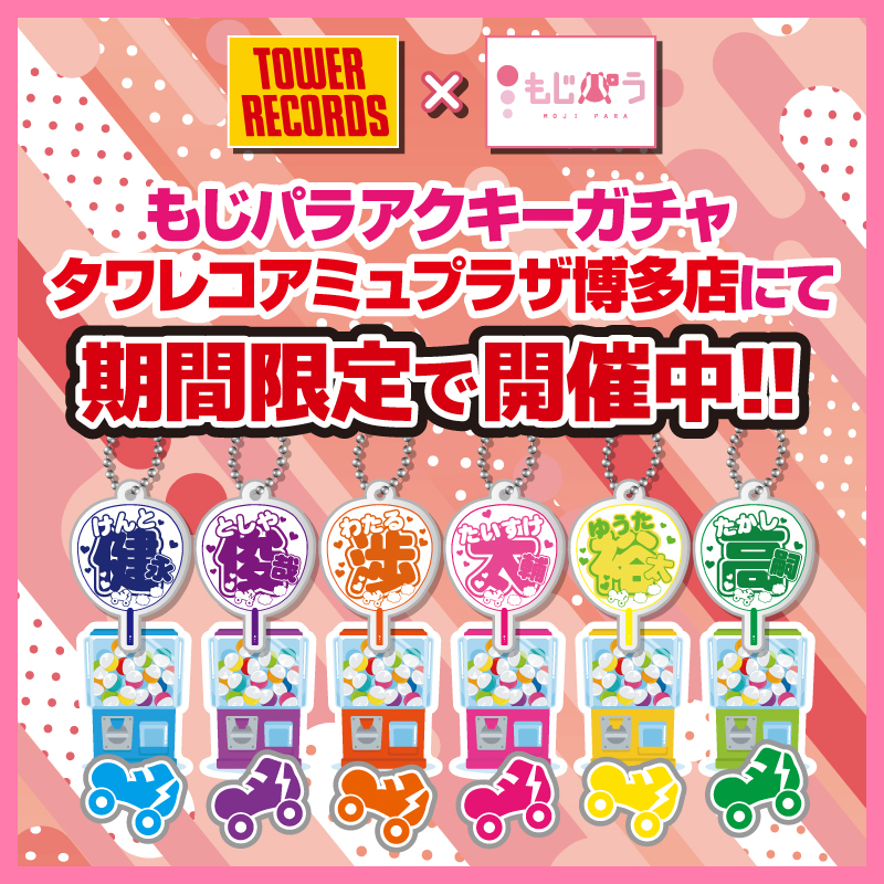 現在、タワーレコードアミュプラザ博多店にてもじパラのアクキーガチャが複数展開中です。